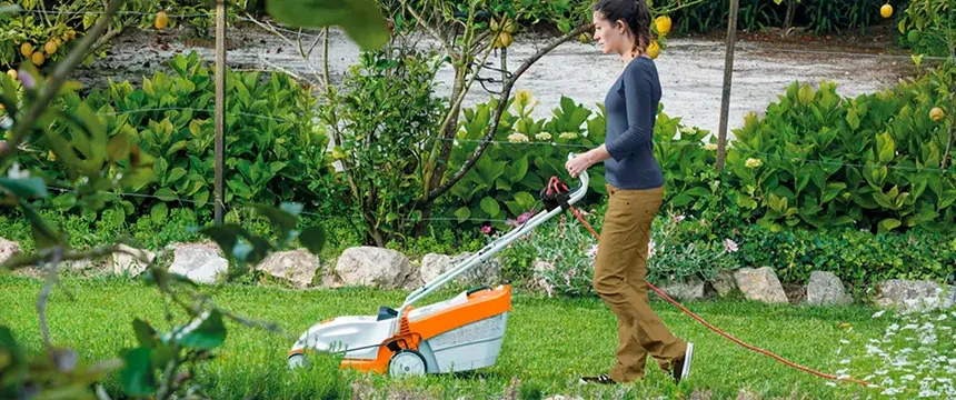 Итак, электрическая газонокосилка STIHL RME 443 хороша как для газонов, так и для окружающей среды и соседей. Она вполне способна обработать средний по площади участок, стоит только позаботиться о надежном удлинителе. Включение машины не требует никаких усилий, а электромотор не нуждается в техническом обслуживании. Добавим, что это самая недорогая модель в серии.