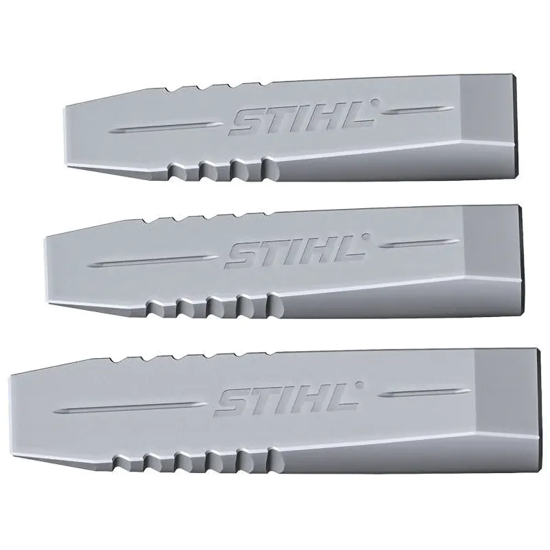 Клин алюминиевый Stihl 820 г из высококачественного алюминиевого сплава. С узким лезвием для лёгкого проникновения в древесину. Три варианта исполнения для деревьев с малым, средним и большим диаметром ствола. Все варианты имеют задний фиксирующий выступ, ведущую кромку и гладкую клиновидную сторону для облегчения установки второго клина при выполнении основного пропила.