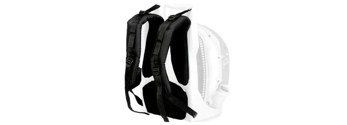 Наплечные ремни регулируются по длине для удобного ношения при любой комплектации тела. Мягкая подкладка для спины гарантирует максимальный комфорт во время работы. Воздуходувка весит всего 10 кг, поэтому ношению устройства по типу рюкзака гарантирует максимальный комфорт работы.