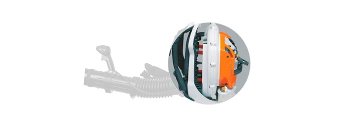 В ранцевой воздуходувке установлен двигатель 2-MIX. В отличие от стандартных моторов топливо потребляется экономнее на 20 % с учетом высоких показателей крутящего момента.