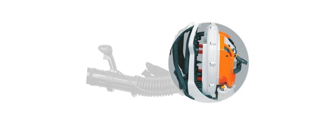 Для стабильной мощности двигателя в ранцевой воздуходувке предусмотрен фильтр. Это облегчает запуск мотора и способствует оптимальному потреблению топливной смеси.