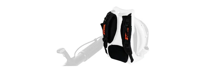Наплечные ремни регулируются по длине для удобного ношения при любой комплектации тела. Мягкая подкладка для спины гарантирует максимальный комфорт во время работы. Воздуходувка весит всего 10 кг, поэтому ношению устройства по типу рюкзака гарантирует максимальный комфорт работы.