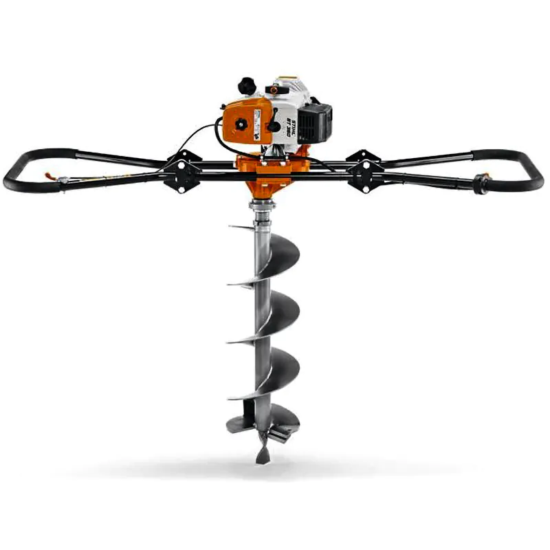 При заклинивании бензобура можно заблокировать редуктор. Это позволит извлечь инструмент без повреждений. Для этого необходимо проворачивать бур, не вынимая патрона, против часовой стрелки.Инструмент оснащен системой ElastoStart, что гарантирует легкий запуск 2-тактного двигателя. Толчки в бензобуре Stihl будут минимизированы за счет демпфирующего элемента в ручке.