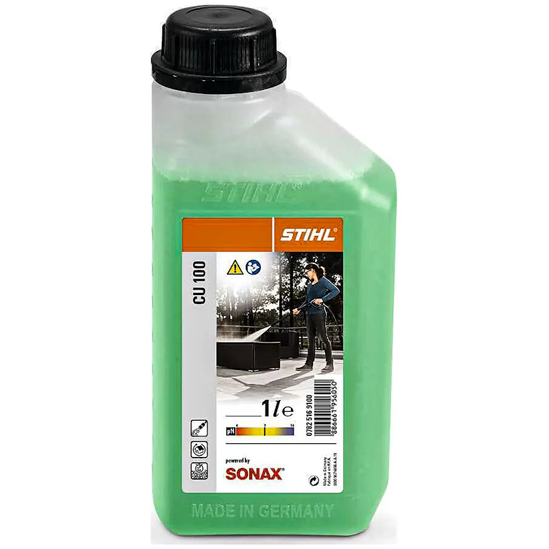 Универсальное моющее средство Stihl CU 100 - для бережного удаления любых загрязнений с твердых поверхностей вокруг дома и на садовом участке. Подходит для лакированных, каменных, металлических, пластмассовых и стеклянных поверхностей. Не содержит нитрилотриацетата (HTA).