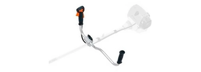 Триммер для кустов контролируется одной рукой за счет многофункционального держателя, на который вынесены все основные элементы управления. Благодаря этому не придется выпускать инструмент из рук. Все настройки параметров работы изменяются прямо во время использования мотокосы.