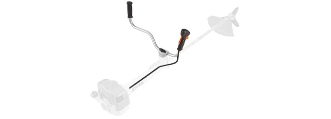 Держатель велосипедного типа позволяет создавать широкий размах при работе с триммером. В отличие от петлеобразной рукоятки, 'то позволяет захватывать больше площади за один раз. Данный тип держателя особенно удобен, если вы работаете с густыми зарослями растительности или на территории с большой площадью. <br>
