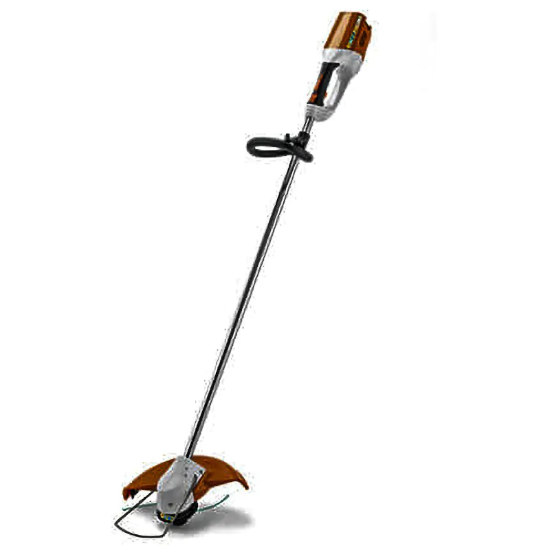 Аккумуляторный триммер оснащен мощным бесщеточным двигателем, который создает магнитное поле и напрямую передает электричество. Мотор без угольных щеток, практически не подвержен механическому износу, имеет высокий КПД, работает тихо, долго служит. Электронная регулировка позволяет оптимально использовать энергию аккумулятора. Конструкция привода режущего инструмента без дополнительного редуктора обеспечивает высокий крутящий момент и уменьшает общую массу инструмента.