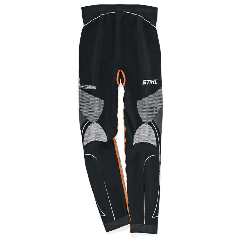 Функциональные длинные брюки ADVANCE могут использоваться как нижнее белье, способствуют комфорту при тяжёлой работе. Имеются эластичные манжеты, которые препятствуют проникновению холодного воздуха. Материал обработан ионами серебра, что устраняет неприятные запахи. Задняя часть брюк и бёдра оснащены согревающими функциональными участками. Брюки быстро высыхают благодаря комбинации водостойких и впитывающих материалов.Набивной материал в рубчик на коленях и голенях. С изображением бензопилы.