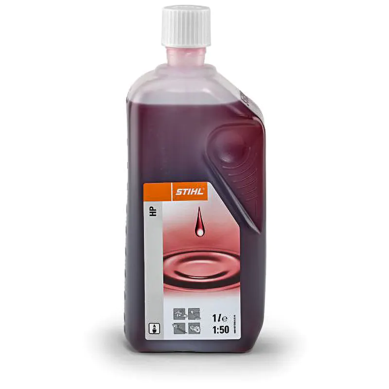 Масло Stihl HP на минеральной основе обладает отличными смазывающими свойствами, а также предотвращает загрязнение свечи, механизма впрыска и выпускной трубы. Масло разработано специально для двухтактных высокопроизводительных двигателей фирмы Stihl, работающих на высоких оборотах с воздушным охлаждением. Класс по мощности двигателя: JASO-FB. Соотношение смеси 1:50