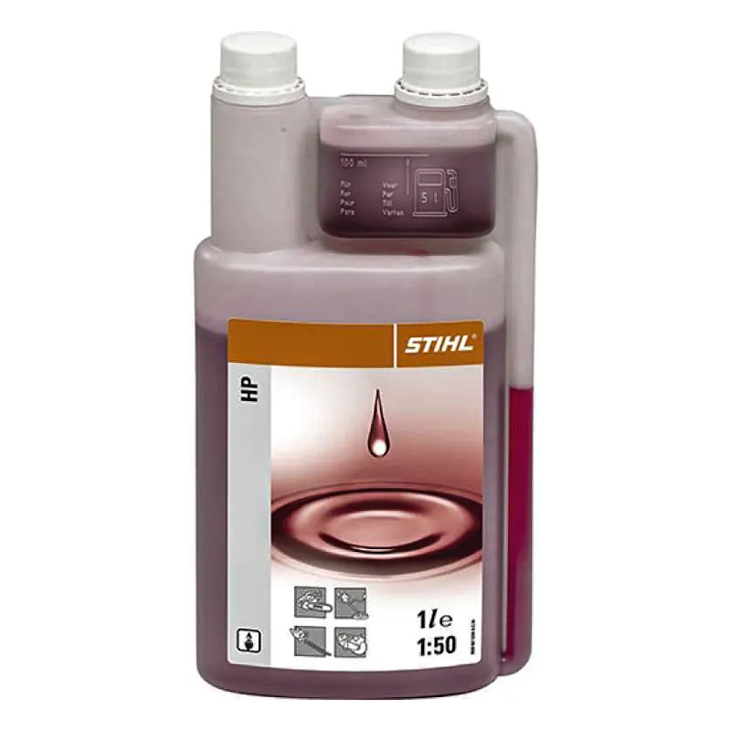 Масло Stihl HP на минеральной основе обладает отличными смазывающими свойствами, а также предотвращает загрязнение свечи, механизма впрыска и выпускной трубы. Масло разработано специально для двухтактных высокопроизводительных двигателей фирмы Stihl, работающих на высоких оборотах с воздушным охлаждением. Класс по мощности двигателя: JASO-FB. Соотношение смеси 1:50