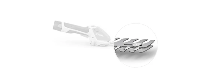 Лезвие длиной 200 мм подходит для подрезки небольших веток кустарников. Каплевидная форма зубчиков, расположенных gо обеим сторонам, обламывает сучья, обеспечивая высокую производительность работы.