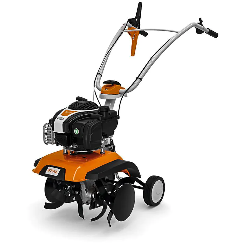 Рукоять настраивается как в горизонтальном, так и вертикальном положениях под индивидуальные параметры роста. При хранении её можно складывать.Культиватор Stihl оснащен 2 колесами для более удобного перемещения по неровной поверхности.