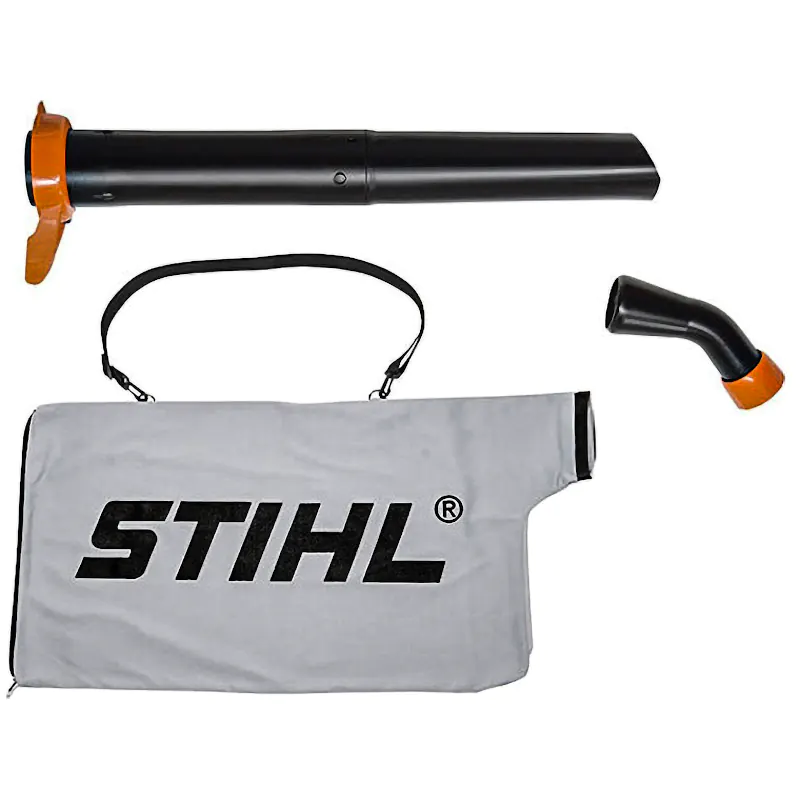 Навесной комплект для электрических воздуходувных устройств. Только для STIHL BGE 71, BGE 81. При всасывании листва пропускается через вентилятор и при этом измельчается. В идеальном случае содержимое мешка-сборника непосредственно используется для мульчирования.
