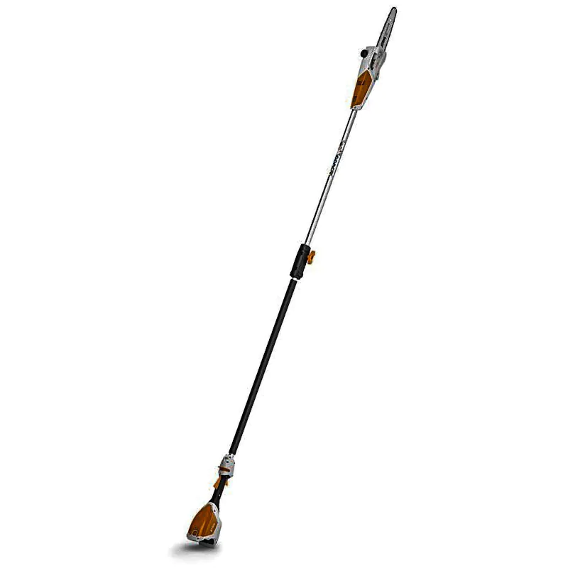 Аккумуляторный высоторез оснащен высокоэффективным бесщеточным двигателем, который отличается экономным расходом заряда и продолжительным сроком службы. Электронная система управления распознает уровень нагрузки и поддерживает постоянное число оборотов, обеспечивая максимальную производительность пиления. Специально предусмотренный крюк позволяет зацеплять и сбрасывать на землю застрявшие в кроне дерева спиленные ветки. Заряда аккумулятора хватает на 45 минут автономной работы.