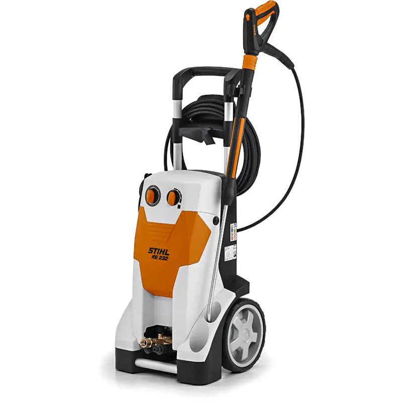 STIHL RE 232 профессиональная мойка высокого давления для использования на автомойке или в клининговой компании. Аппарат оснащен эргономичным моющим пистолетом с интегрированной системой подачи чистящего средства. В комплект поставки входит шланг высокого давления длиной 10 м, что позволяет очищать крупные объекты и технику без перемещения самой мойки. Шланг защищен стальной обмоткой, которая продлевает срок его службы.