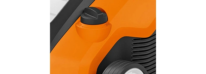 Для плавной регулировки глубины обработки достаточно установить дисковый переключатель в одно из шести положений. При вращении против часовой стрелки режущий валик поднимается, против – опускается. При повороте переключатель в самое верхнее положение валик поднимается в безопасное для транспортировки положение и не касается земли.