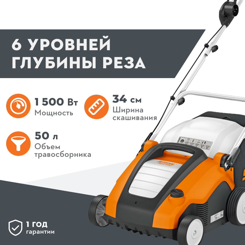 Электрический аэратор Stihl RLE 240 используется для удаления мха и отмершей травы без повреждения газона, чтобы обеспечить доступ питательным веществам к корням растений. Рабочая ширина в 34 см позволяет быстро обрабатывать небольшие участки площадью до 500 м².