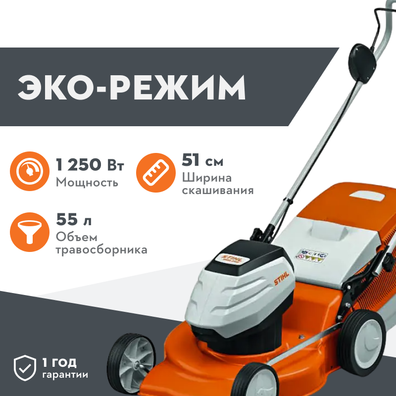 При активированном ECO-режиме частота вращения двигателя автоматически регулируется в соответствии с текущей требуемой мощностью. За счет этого аккумуляторная газонокосилка Stihl расходует меньше энергии и способна обработать большую площадь, прежде чем ей снова потребуется подзарядка.