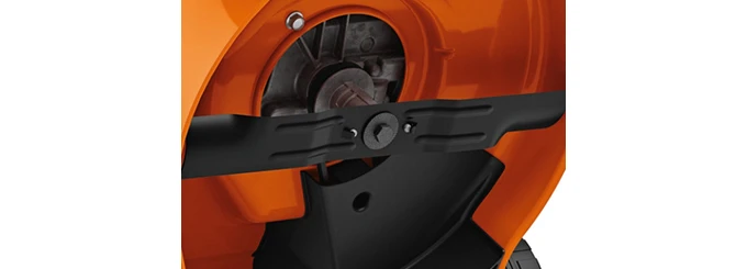 Нож особой формы обеспечивает равномерную стрижку газона и оптимальное заполнение травосборника. Вращаясь в корпусе, он создает сильный поток воздуха, который приподнимает траву перед скашиванием. Это обеспечивает аккуратный срез, чистый и опрятный вид газона без расхода лишнего заряда аккумулятора.
