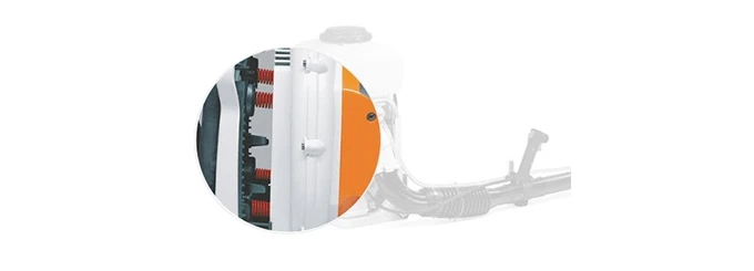 - Большое заливное отверстие бака для разбрызгиваемой жидкости снижает риск пролития жидкости. Это также облегчает очистку емкости.