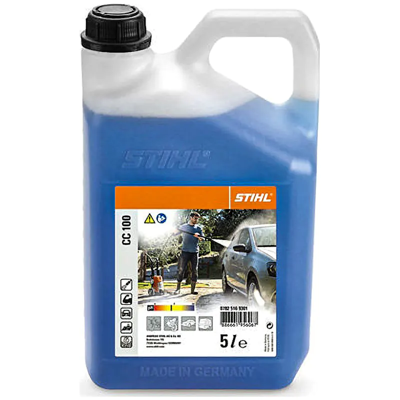 Шампунь для транспортных средств с воском Stihl СС 100 5 л - пенящееся моющее средство для удаления типичных уличных загрязнений, таких как соль, пыль и остатки насекомых с любых автомобилей. Высококачественный воск придает сияющий блеск, с длительным водоотталкивающим эффектом, не содержит нитрилотриацетата (HTA).