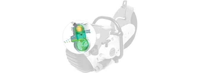 2-тактный мотор гарантирует высокую мощность. Такой тип двигателя характеризуется небольших количеством вредных выхлопов. Небольшой расход топливной смеси позволяет экономить до 20 % без потери мощности