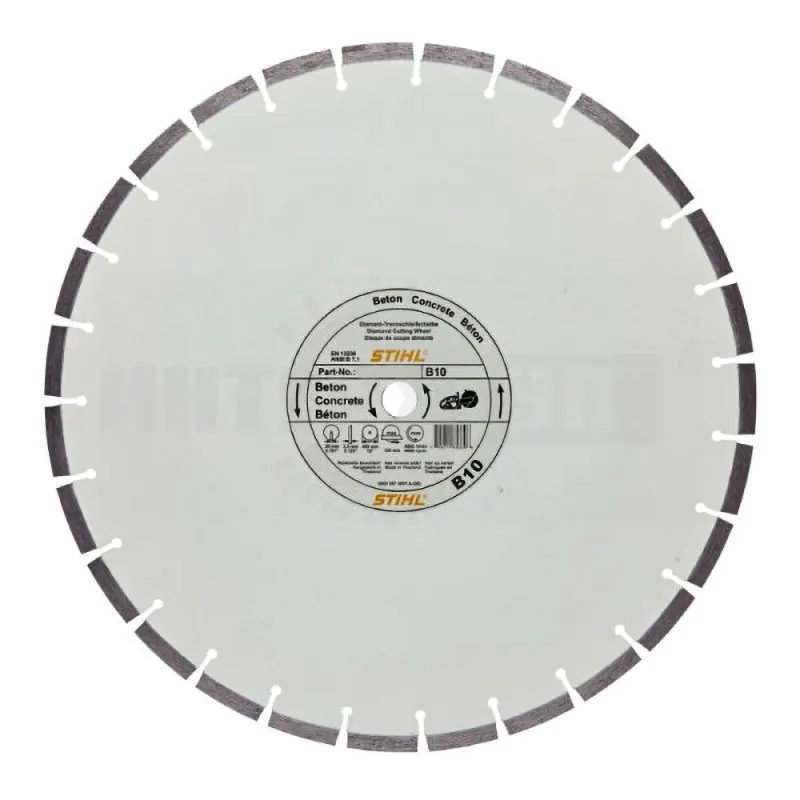 Алмазный диск Stihl 350 мм В60 - ля резки бетона, черепицы, бетонного заполнителя, а также железобетона и общестроительных материалов. Отрезные алмазные диски Stihl отличаются высоким качеством и долговечностью. Их характеристики обусловлены тщательным подбором материалов и современными технологиями производства. Строжайший контроль качества на всех этапах производства отрезных кругов позволяет гарантировать максимальное соответствие продукции всем стандартам Stihl