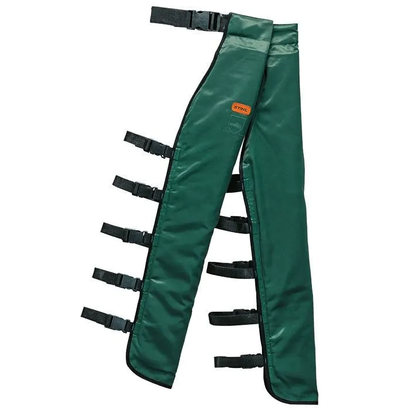 Защитный фартук передней части ног Stihl используется во время нерегулярных работ с бензоинструментами. Соответствует стандарту EN 381 и обладает первым классом защиты от прорезания. Множество ремней с пластмассовыми застежками позволяет подгонять изделие по индивидуальным параметрам. Верхний материал обладает грязе- и водоотталкивающими свойствами. Регулируемая длина, застежки из искусственного волокна, интегрированный пояс. 50 % хлопка и 50 % нейлона. EN 381, класс защиты 1 (соотв. 20 м/с), модель А.